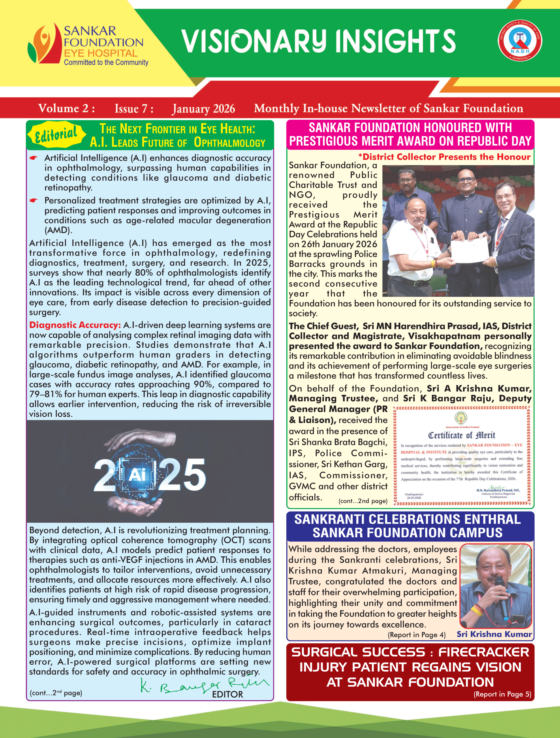 Sri Rao received several awards for his selfless service : among which the most outstanding service award was from Rotary Club, Waltair, Master MN Award from World Teacher Trust, Madras Telugu Academy Ugadi Puraskaram, Best Surgical NGO Award for Sankar Foundation from Srikakulam.